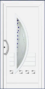 CLASSIC TYP 21, Glasdekor 113, Schmelzglas, blaue und weiße Brocken, sandgestrahlt, Motiv klar, Glasperlen mit Edelstahl -Außengriff